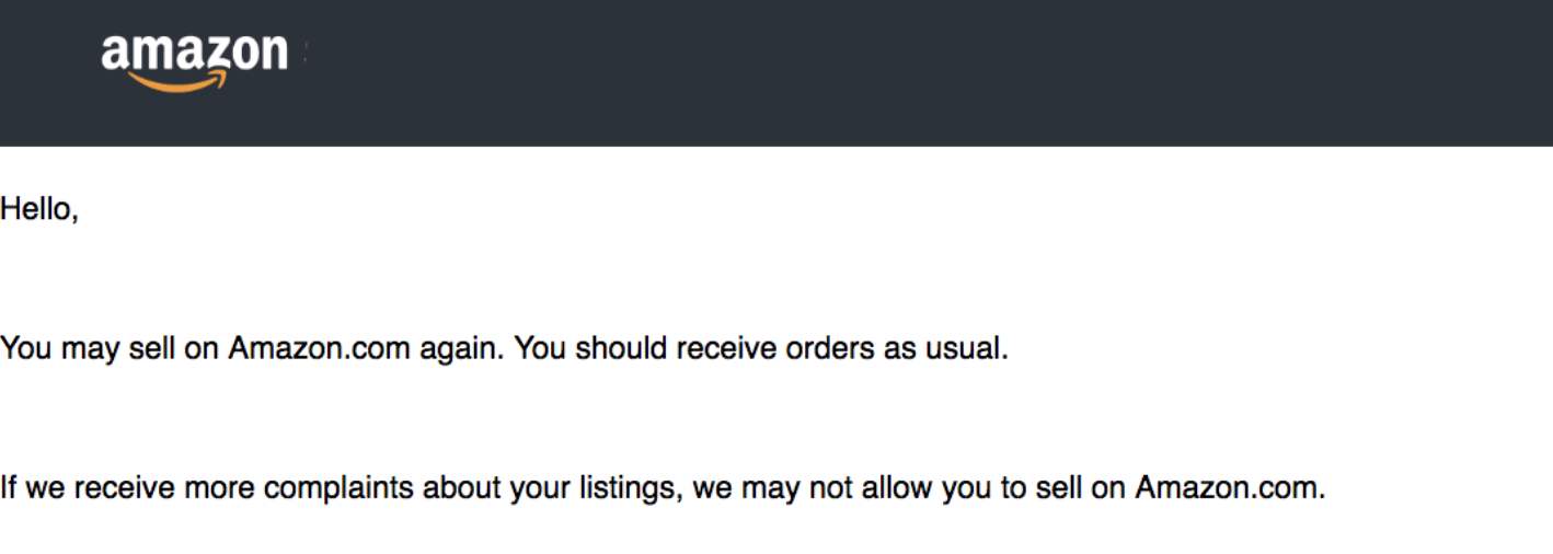 In closing, while submitting your appeal and plan of action won’t guarantee that your account is reinstated, a thorough investigation into why you may have been suspended will also show that you care about being a part of the Amazon family.