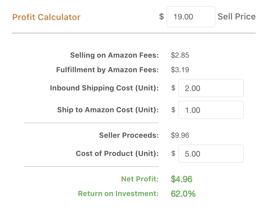 But you also need to consider other cost factors, like warehouse prep or returns figures that may eat into your bottom-line.